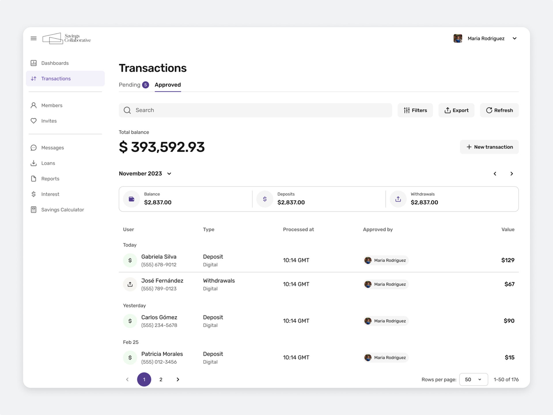 Centralized management of members, transactions and loans, operational and financial dashboards, monitoring of ambassadors.
